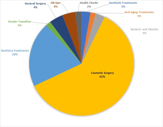 As obesity continues to be a growing problem and wait-times for government-funded procedures grow longer, Bariatric procedures like Gastric Sleeve continue to gain popularity. General surgery requests continue to grow increasingly popular as more connected medical travelers search for affordable, and immediate general medical procedures while overseas for business or vacation. With an aging population and increased focus on founding the fountain of youth, anti-aging and aesthetic treatments continue to be popular with many unisex business and vacation travelers.