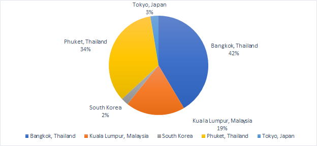 For July, Bangkok, Thailand took the #1 spot, ahead of popular Phuket, Thailand. Kuala Lumpur, Malaysia continues to be a strong choice for complex/multiple procedures while emerging destinations like Japan and South Korea continue to grow in health checks (Japan), and cosmetic surgery (South Korea).